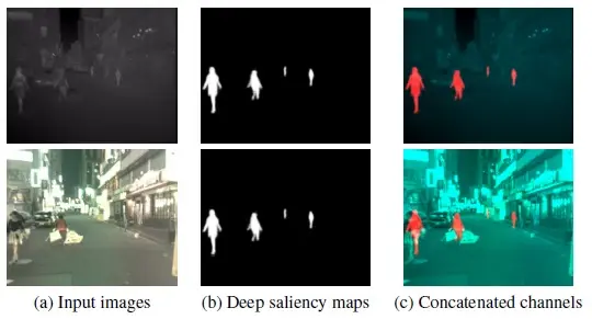 - Fusion Network and Visual Saliency Transformation: The proposed approach introduces a fusion network that combines features from visible and thermal camera inputs. Augmentation through visual saliency transformation enhances the fusion process. The fusion network is integrated into the YOLO-v3 architecture, resulting in a detection model trained in a paired setting.