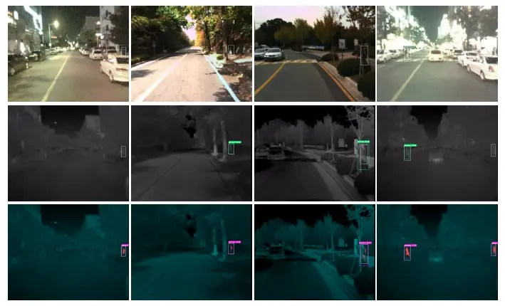 - Superior Results and Low Computational Cost: Extensive experiments conducted on the KAIST multi-spectral dataset demonstrate the superiority of the proposed fusion framework. The approach outperforms single-input methods and other fusion schemes, showcasing its effectiveness. Moreover, the proposed approach boasts a significant advantage of a very low computational cost, making it suitable for real-time applications. Additional tests on a security robot further validate its performance.